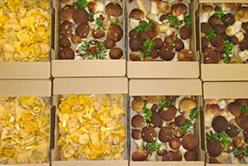 Tukkumyyntinä: tuoretuotteet sienet (herkkutatti, kantarelli, haapa- ja kangasrousku) ja marjat (puolukka, mustikka, lakka).