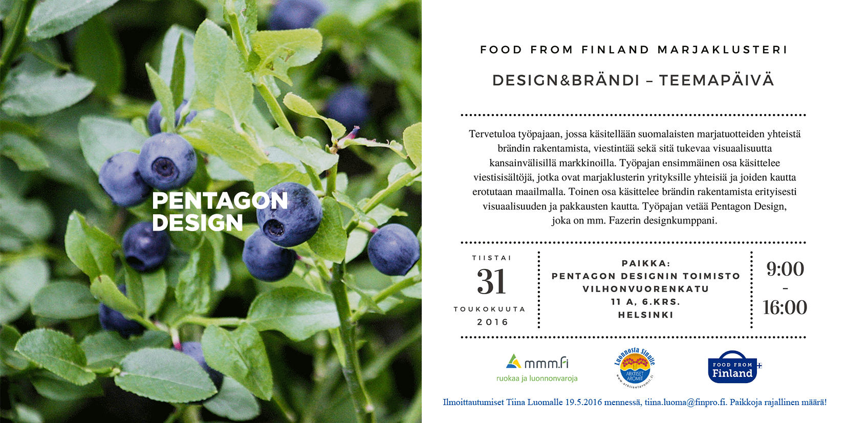 Päivän tavoitteena on työstää yhteisiä viestejä suomalaisten marjatuotteiden ainutlaatuisuudesta kertomiseksi maailman markkinoille ja näiden viestien muokkaaminen vientiä tukevaksi markkinointimateriaaliksi.