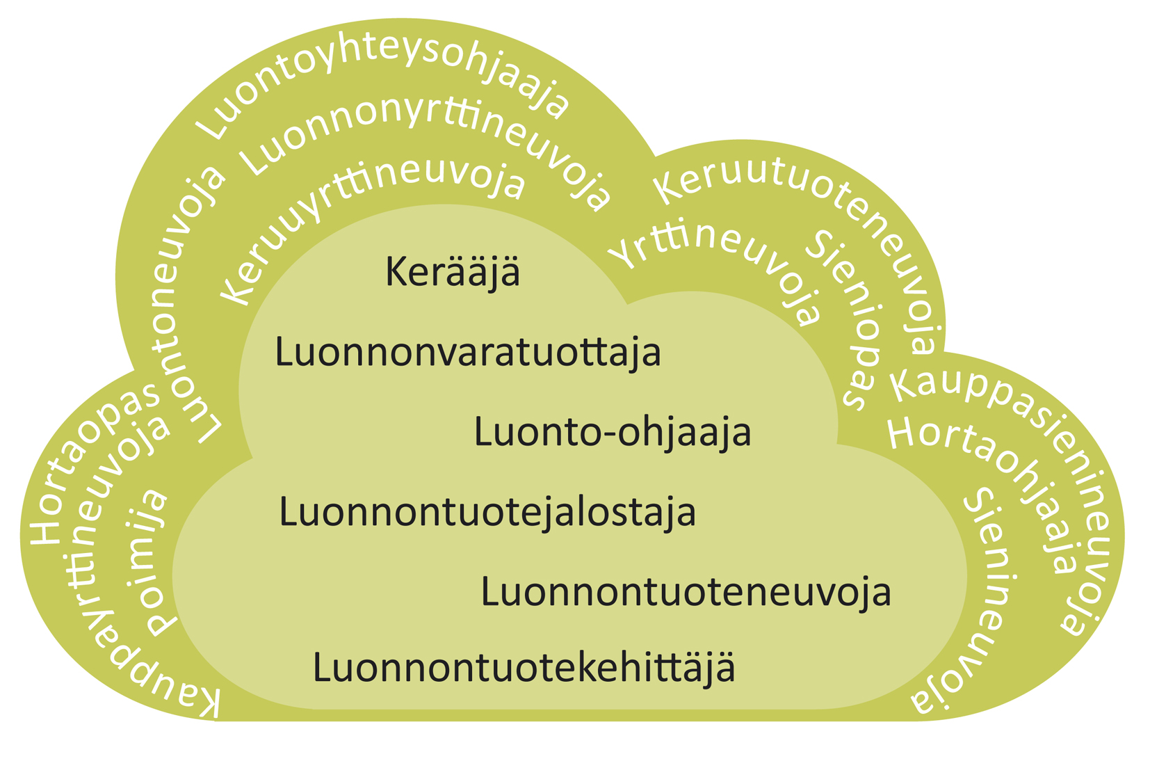 Luonnontuotealalla toimivien nimikkeistö vilisee erilaisia neuvojia, jalostajia, tuottajia, poimijoita, oppaita ja ohjaajia. Nimikkeitä käytetään sekä lyhytkurssin suorittamisen että ammatillisen koulutuksen jälkeen. Luonnontuotealan etujärjestöt ovat ryhtyneet selkiyttämään nimikkeiden käyttöä.